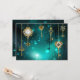 Chaves Douradas e antigas com engrenagens e marcadores penduram em correntes douradas sobre fundo verde luminoso.