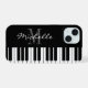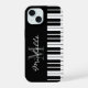 Chaves pretas e brancas de piano monograma iPhone 15. Design de monograma clássico para pianista, pianista, professor de música, instrutor, etc. Design de teclado com modelo de nome personalizado. Cobrir de amigos orçamentários para proteger seu telefone de precioso.