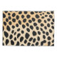 Esta design apresenta um padrão de impressão leopardo sobre um fundo laranja claro. O padrão é composto por manchas pretas que variam de tamanho e forma, criando um contraste com a cor laranja. Esta design é perfeita para quem ama impressões animais e quer