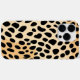 Esta design apresenta um padrão de impressão leopardo sobre um fundo laranja claro. O padrão é composto por manchas pretas que variam de tamanho e forma, criando um contraste com a cor laranja. Esta design é perfeita para quem ama impressões animais e quer