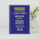 Concurso de aposentadoria único e engraçado para chefe de polícia ou polícias. Design tem as palavras congelar, você é convidado para uma festa de aposentadoria. Fácil de personalizar com os detalhes da sua festa. Celebre o trabalho de duro do seu chefe e anos de dedicação com este convite de uma espécie de festa de aposentadoria.ou qualquer
