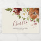 Este Rótulo de Frasco de Mini Vinho Floral de outono apresenta uma fronteira superior de marsala, flores laranja escuras e rosa branca, com verde botânico e folhagem exuberantes, galhos arrojados e texto escrito à mão. Perfeito para uma festa de outono.