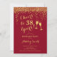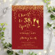 Convite de festas de aposentadoria elegante para homens ou mulheres. Convide cartão em vermelho e ouro brilhante falso. Apresenta a fonte do script de tipografia clássico, óculos de champanhe e confetti. Saúde para a aposentadoria! Personalize com seus próprios detalhes. Pode ser personalizado para mostrar a qualquer ano. Impressos convites Zazzle ou download instantâneo de modelo digital. Perfeito para uma comemoração de na moda.