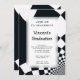 Convide convidados para comemorar com o Convite à Festa de formatura de Cheques Negros geométricos. Personalize-o com o nome do formando recente e detalhes específicos do seu evento. Adequado para um segundo grau ou formando universitário. Este convite para o formando personalizado do estilo abstrato, bonito, apresenta um único preto verifica o design de arte fractal. Disponível como um convite impresso para envio por correio ou como um download digital para fácil compartilhamento digital online.