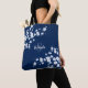 A cereja branca elegante floresce num fundo azul marinho. Personalizar este saco de tota floral elegante com um nome e um monograma,
