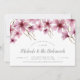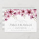 O convite de lanças florais chic apresenta uma borda superior de flores de cereja cor-de-água cor-de-rosa-pincel. Personalize com seus detalhes de brunch da madrinha em scripts modernos, com letra manuscrita, e em caracteres tradicionais sans serif. Convites invertendo-se para sutis cinzas pálidas e listras brancas.