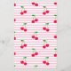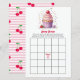 Adicione um doce toque ao seu chá de fraldas com esta cereja no top Baby Bingo Game Card! Apresentando um delicioso cupcake com uma cereja no topo, ilustrações brincalhonas de cereja, e sotaques cor-de-rosa listrados, este jogo divertido e interativo permite aos hóspedes adivinhar os presentes que a futura mãe receberá. O primeiro a conseguir cinco em seguida ganha! Uma adição perfeita ao seu chá de fraldas temático de cereja, trazendo entusiasmo e alegria para a celebração.