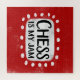 "Chess Is My Jam" é um design de texto divertido com uma forma de sotaque branca cercado por pontos brancos texturizados.