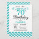 Surpresa 70 de Aniversário com Teal Chevron.Preto & Branco. Aniversário Adulto. O Dia do Homem ou da Mulher Convidam. Para mais personalização, clique no botão "Personalizar" e use a ferramenta design para modificar este modelo.