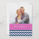 cartões com fotos personalizados de convite de casamento em azul marinho escuro elegante e contemporâneo, padrão de zigzags modernos de crosta fuchsia brilhante e branco. Personalize esses convites com seus detalhes de casamento e sua própria foto. Disponível em produtos correspondentes para todas as suas necessidades de casamento.