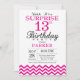 Surpresa 13 de Aniversário com Chevron Rosa Quente. Preto & Branco. Aniversário de crianças. Convidar Menino ou Menina. Para mais personalização, clique no botão "Personalizar" e use nossa ferramenta de design para modificar este modelo.