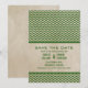 Moderno com uma reviravolta vintage é este Chic Chevron Salvar o Anúncio de Data. Este design apresenta um histórico de aparência de papel e um padrão de gavão zigzag em verde escuro. Fácil de personalizar, simplesmente adicione seus detalhes de casamento. Clique em "Personalizar" para encontrar mais opções de personalização.