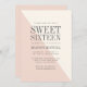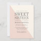 Simples e espantoso, estes belos e doces 16 convites de festas irão apresentar o seu grande evento com uma visão moderna, mas feminina. O design chic e sofisticado de blocos coloridos apresenta um fundo cor-de-rosa pálido diagonal e creme, com inscrições modernas em blocos em cinzas de carvão lindíssima.