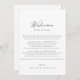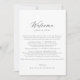 Esta carta de boas-vindas de prata chic é perfeita para um casamento rústico. O design simples e elegante apresenta tipografia de script clássico e rico em prata. Personalize a frente com uma mensagem de boas-vindas para seus convidados e seus nomes. Personalize as costas com a programação de eventos e outras informações úteis.