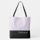 Esta bela sacola de dedos de moda à frente mostra a palavra "Bridesmaid" em cor de texto branco sobre preto com a sacola de dedos superior na Orquídea Soft Blush personalizada. Tem bastante espaço para texto personalizado. Os gráficos e o texto estão em ambos os lados desta bolsa de tote. Alça preta. Personalize mais ou mais comprares, conforme mostrado.