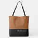 Esta bela sacola de dedos de moda à frente mostra a palavra "Bridesmaid" em cor de texto branco sobre preto com a sacola de dedos superior em Matte Copper personalizado. Tem bastante espaço para texto personalizado. Os gráficos e o texto estão em ambos os lados desta bolsa de tote. Alça preta. Personalize mais ou mais comprares, conforme mostrado.