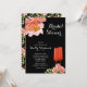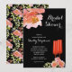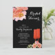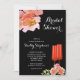 Lindas flores cor-de-água rosa e vermelha e dois copos vermelhos de champanhe em um fundo preto destacam esses convites de chá de panela brinchosos e borbulhantes. CORRESPONDENDO a itens na nossa loja.