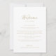 Esta carta de boas-vindas de ouro para caligrafia é perfeita para um casamento rústico. O design simples e elegante apresenta a tipografia clássica e de rico em ouro. Personalize a frente com uma mensagem de boas-vindas para seus convidados e seus nomes. Personalize as costas com a programação de eventos e outras informações úteis.
