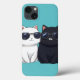 A charming white and black cat duo with sunglasses sits together against a turquoise background. This cute, modern illustration features sleek lines and a playful vibe, with the cats’ cool shades adding a stylish touch. Perfect for whimsical decor or accessories.
