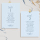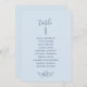 Ajude os seus convidados a encontrar a mesa com estes cartões elegantes do plano de assentos de mesa com os nomes dos convidados. Cartões duplos para que os hóspedes possam procurar os seus nomes, tanto na frente como no verso. Espaço livre ao redor, dando-lhe a liberdade de usar clipes ou furos de socos para exibições suspensas, ou usar um mesa/quadro. Design em fundo azul empoeirado, texto azul, delicado detalhe floral desenhado à mão em tons azuis e detalhes caligráficos manuscritos. Várias opções de cores. Ter todos os números de tabela na mesma cor ou cores misturadas de acordo com o tema de cor do evento. Parte de uma coleção com uma variedade de produtos de coordenação disponíveis, incluindo cartões de números de tabela e menus.