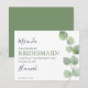 Mínimo simples será minha dama de honra? Apresentando elegante cor d'água, eucalipto verde, com falsos caules dourados em fundo branco clássico e um elegante modelo de proposta que pode ser facilmente personalizado. São usadas fontes de caligrafia manuscritas e serif cursivas. Itens correspondentes disponíveis na minha loja.