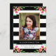 Convide amigos e família para a sua formatura com um convite para a formatura Chic Floral. O design impressionante apresenta faixas pretas e brancas, realces florais cor-de-água rosa, quadro de fotos douradas e espaços reservados para seu texto e foto personalizados.
