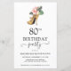 Convite de aniversário de 80 de alto salto Dourado Tropical Floral Dourada moderna Elegante, apresentando o nosso glamoroso brilho de ouro amarelo brilhante, cercado por flores tropicais cor-de-rosa e verde. O fundo é uma luxuosa lavagem de ouro a aquarela. Fácil de personalizar com suas informações para um simples convite bolsa mensageifesta de aniversario elegante. **O nosso documento sobre o ORÇAMENTO é mais pequeno e delicado, mas ainda é bonito!** Para uma comparação de tipos de papel, veja o nosso vídeo aqui: https://youtu.be/G0F9Am5HPD4 Se precisar de assistência ou de itens correspondentes, contacte-nos em cedarandstring@gmail.com.