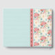 Livro de hóspedes de chic feito em um coral colorido e uma mistura azul de flores, na metade da coluna do livro, e um padrão de bolinhas azul de ovo de robin, na outra metade. Estão disponíveis produtos de casamento lindos e combinados. Personalize o texto marrom para atender às suas necessidades de casamento.