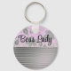 Nesta corrente de na moda é um padrão floral prateado num pano de fundo cor-de-rosa onde você pode personalizá-lo com um nome, logotipo ou frase ou mantê-lo como está com as palavras "Senhora Chefe" que é limitada por um colar prateado e abaixo que são listras prateadas brilhantes para chic adicionado.
