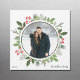 Este verde-oliva maravilhoso com a coroa de Natal de Holly berry rodeia sua dentro de fotos de feriado de um círculo. Um cartão magnético quadrado chic para um casal ou família moderno. Folhas botânicas primavera do belo ímã fotográfico.
