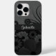 Hibiscus: Preto © Sunny Mars Designs. Belo, moderno, moderno, chic, giro, Gótico elegante, na moda elegante, personalizado com duro de caixa-companheiro com cobrir bonito de preto Gótico e escuro ou cinza de flor de hibisco tropical crua. Personalize-o adicionando seu próprio nome ou outro texto nele.
