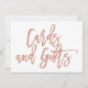 Chic Hand Lettered Wedding Sign que diz "Cartões e Presentes" em Rosa