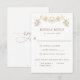 Belo e elegante cartão RSVP com opções de refeição. Design semelhante sem opções de refeição também está disponível. Design com delicada fronteira com terra botânica dourada falsa. Capacidade para adicionar opções de refeições ou solicitar quaisquer necessidades dietéticas especiais. Voltar com "rsvp" na caligrafia de ouro. Parte de nossa "Encantação Branca e Dourada e Coleção Celestial" com uma variedade de produtos de coordenação, incluindo envelopes RSVP. Visite a coleção inteira em: https://www.zazzle.com/collections/white_and_gold_enchanting_and_celestial_collection-119073673253835730