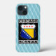 Escudo clássico de design, com o texto Chicago Bosnian e as bandeiras da Cidade de Chciago e da Bósnia e Herzegovina