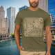 Camiseta gráfica com a linha do horizonte de Chicago Illinois. O horizonte de Chicago está na frente desta camiseta. Cores de bronzeado Khaki. Personalize o verso com seu nome ou texto desejado. Camiseta excelente para homens, mulheres e crianças. Use a modelo para criar sua própria camiseta gráfica de Chicago.