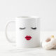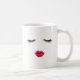 Chicotes e caneca de café dos lábios