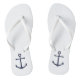 Chinelos náuticos minimalistas modernos apresentam âncora azul marinho sobre fundo branco.