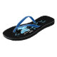 Sandálias confortáveis para uma nova mãe de um menino! Elas são decoradas com uma borboleta e folhas de primavera em azul e têm uma cor de fundo preta personalizável. Selecione sua cor favorita escolhendo na paleta de cores. Ideia de presente divertido para uma nova mãe!