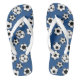 Um padrão repetitivo de bolas de futebol preto e branco em azul marinho