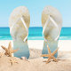 Chinelos de verão com listras de cor azul-d'água do oceano ombre e cintilantes flecks de ouro desenhados para evocar pensamentos de um dia relaxante na praia com água azul e dedos arenosos. Perfeito para casamentos de praia e destino, cruzeiro, férias tropicais e viagem.