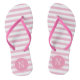 NewParkLane - Chinelos monogramas, com um padrão abstrato de listras cor-de-rosa e brancas e um crachá rosa quente para suas iniciais ou texto personalizado.