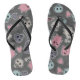 Chinelos Crânios e corações sobre fundo preto