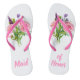 chinelos bonito, cor-de-rosa e branco, com gráficos de buquês florais de cor-de-água em cada escorregador. A madrinha de casamento feita em texto cor-de-rosa é totalmente personalizável para atender às suas necessidades.