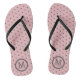 Chinelos monogramas bonitos em fundo rosa e bolinhas cinzas.