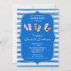 Este convite colorido e divertido é ideal para celebrar uma Festa de aniversário com um tema de verão. Ele apresenta três pares de chinelos incompatíveis com listras e padrões bolinhas. Um quadro de ornamentado e um plano de fundo de listras de aquarela acrescentam ao aspecto fresco e de verão. Ideal para uma festa na praia ou uma festa de piscina. Adicione os detalhes do seu próprio partido.