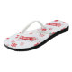 Um par de chinelos com uma repetição contínua vermelha de elementos de Natal - meias, gingerbreadman, flocos de neve, renas, Enfeites de natal, velas, árvore de Natal e as palavras "Feliz Natal" - em ilustração.