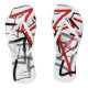 Chinelos com padrão de cinzas vermelhas de ziguezague com estilo livre. Moda moderna alegre.