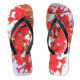 A imagem nesses Chinelos largos de correias é uma fotografia original de MaeFlowers de uma planta de kalanchoe florida com flores vermelhas. A vista de cima mostra as pétalas vermelhas brilhantes sobre um fundo de cor pálida e pastel, com uma sugestão de folhas verdes e pote de flor de terracota.