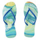Azul macio e amarelos, um legal par de chinelos de verão. Duas ondas de aquarela quebrando brincalhão na costa.