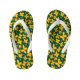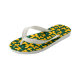 Padrão floral contínuo com pequenas flores amarelas e pontos turquesa em fundo verde escuro.